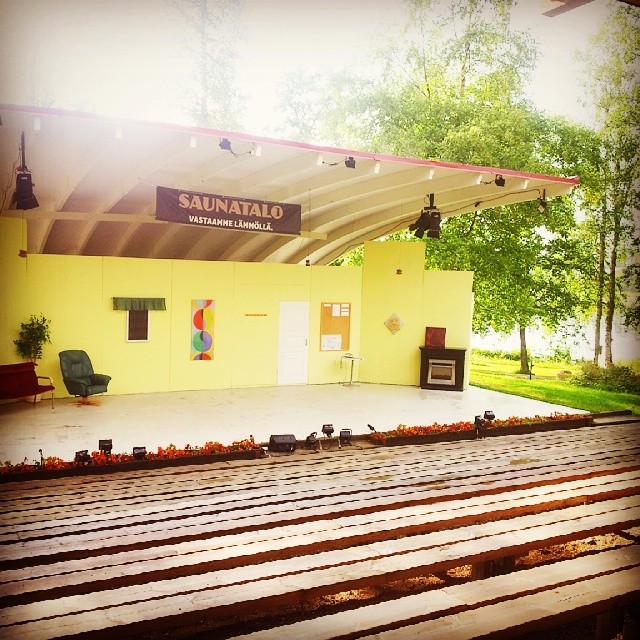 P.S. kuten artikkelikuvasta näkee, sateen uhka on aina mahdollinen, mutta joka ilta on näyttänyt tältä ennen esitystä!