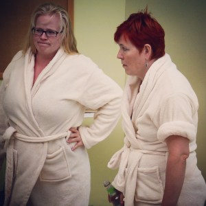 Naisten saunassa jo käyneet arvaavat keistä on kyse. Kyllä tuon illanistujaisen lahjomattomimmat ja tiukimmat ääripäät ovat Marja ja Anna-Riitta. Roolien takaa siis Hannele ”Hansu” Väisänen ja Janica Pynnönen. Molemmat ovat pisaralaisia jo toisella vuosikymmenellä, Hansulla pian jo kolmas edessä.